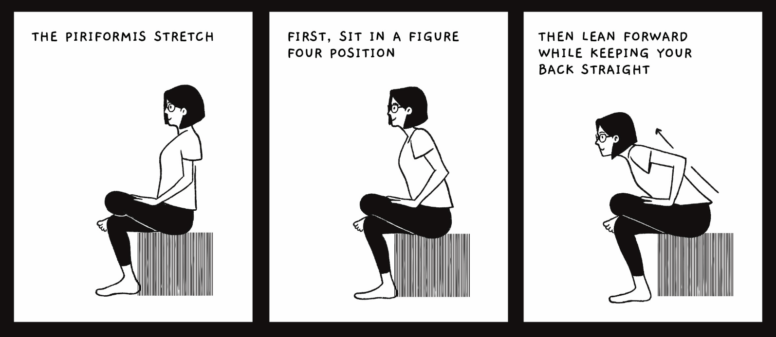 Performing these stretches on a regular basis is a good way to reverse the effects of prolonged sitting, and restore the body to into a better posture